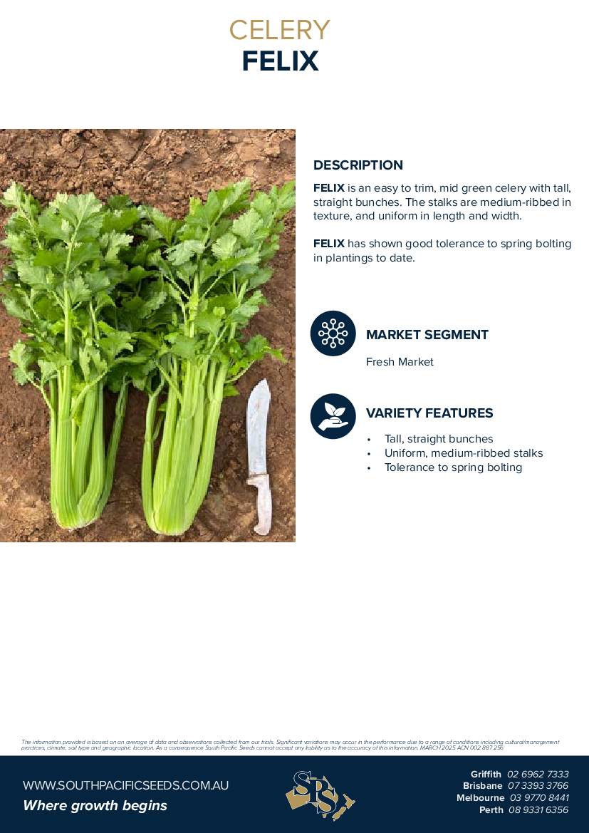 FELIX is an easy to trim, mid green celery with tall, straight bunches.